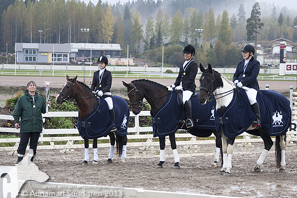 - Aluemestaruus joukkuekultaa kouluratsastuksessa 2017, 2014, 2013, 2011
